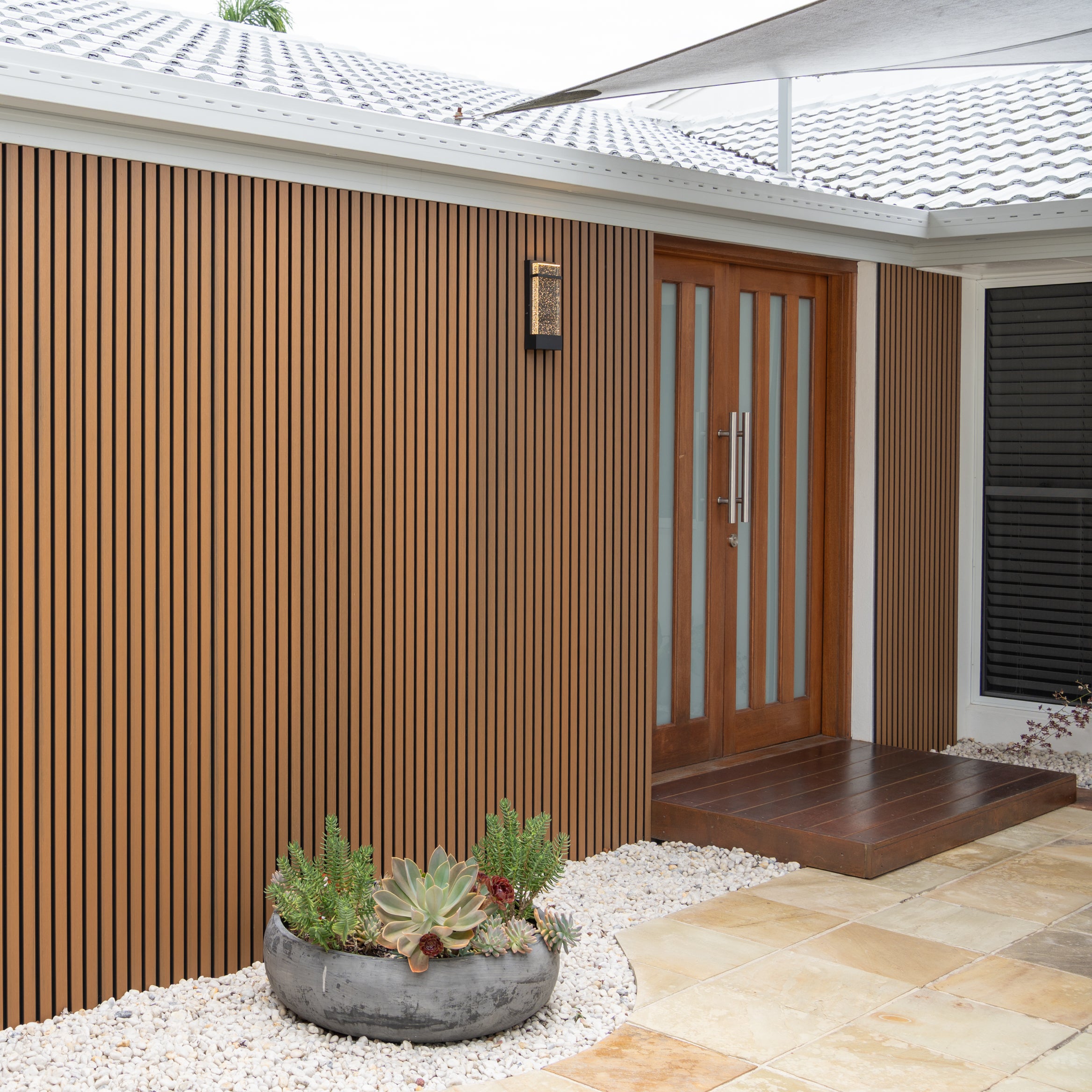 Delaco Outdoor Panels are designed to bring modern style and lasting durability to any external space. Made from WPC (Wood Plastic Composite) a robust, long-lasting material designed to handle our harsh sun and storms — these panels combine the natural warmth of timber with minimal upkeep. Whether you’re enhancing a fence, façade, or outdoor feature wall, our panels are built to withstand Australia’s harsh climate while maintaining their visual appeal year after year. With easy installation, minimal maintenance, and a variety of lengths and finishes to suit your design, Delaco Outdoor Panels are the smart choice for builders, architects, and homeowners alike.