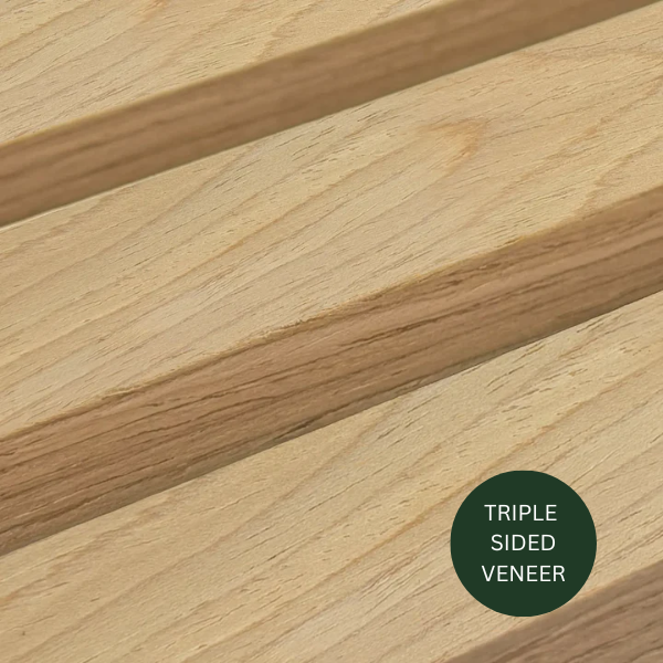 Please note that our panels made with natural veneer may present variations in colour, grain, and texture. These differences can occur between product batches and may also appear different from how they are displayed in photos due to lighting and natural material characteristics. This is a normal and expected feature of real timber veneer, making each panel unique and one of a kind.
